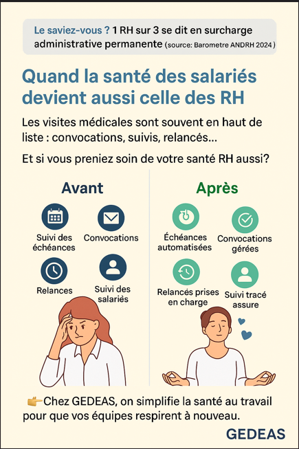 Vite et bien. Nos équipes spécialisées interviennent rapidement, avec des engagements contractuels de réactivité. Chez GEDEAS, on ne laisse jamais un client dans le flou — ni un salarié sans convocation.